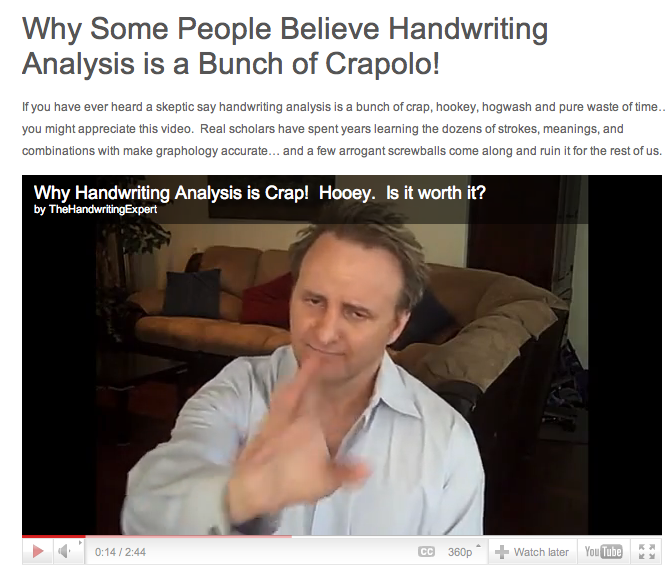 If you have ever heard a skeptic say handwriting analysis is a bunch of crap, hookey, hogwash and pure waste of time… you might appreciate this video. Real scholars have spent years learning the dozens of strokes, meanings, and combinations with make graphology accurate… and a few arrogant screwballs come along and ruin it for the rest of us.