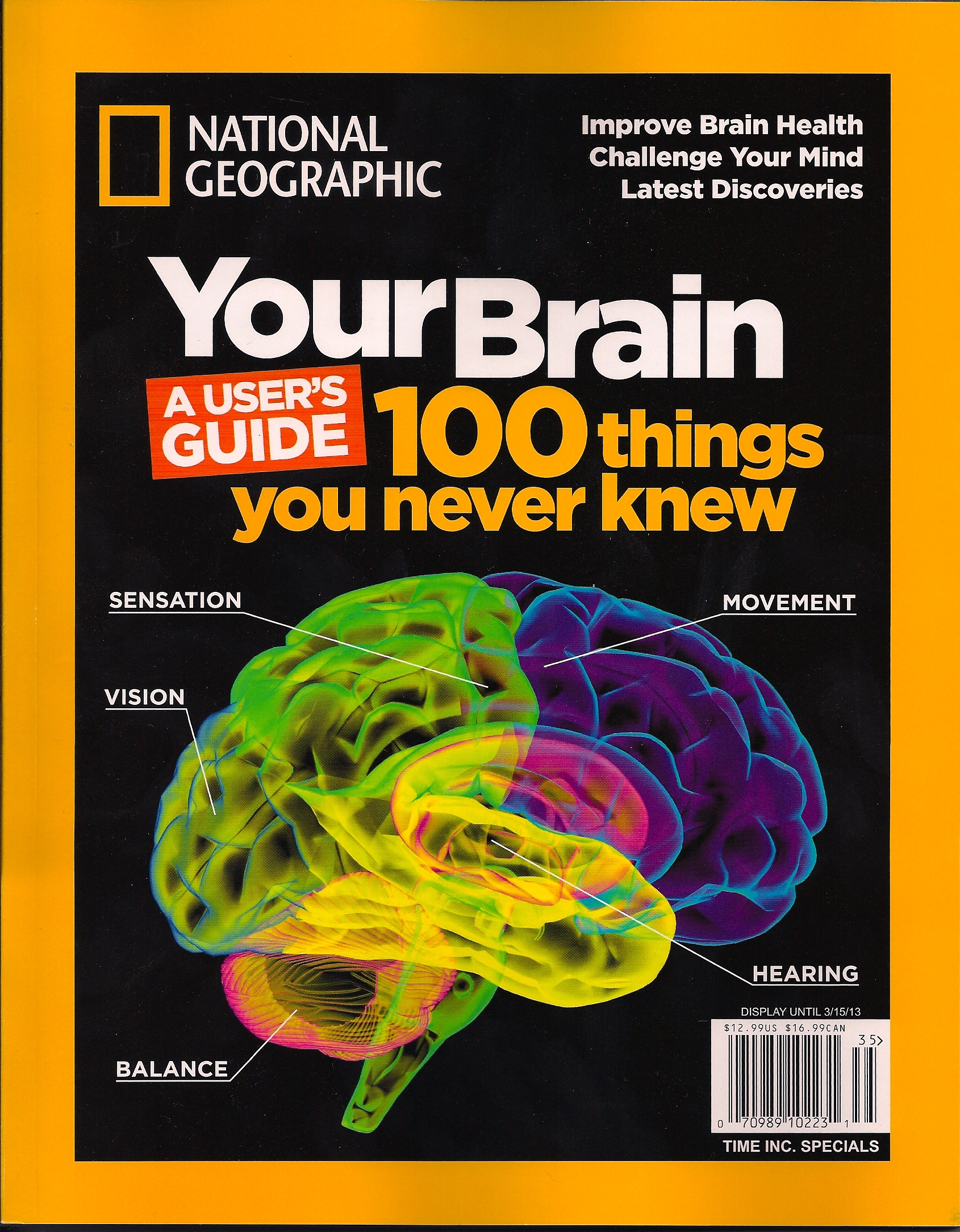 NATIONAL GEOGRAPHIC ISSUE DEC. 15, 2012-MARCH 15, 2013: YOUR BRAIN, A USER’S GUIDE, 100 Things You Never Knew.